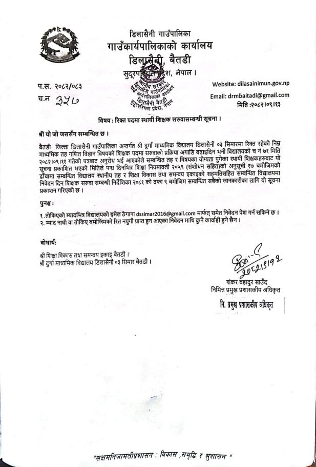 रिक्त पदमा स्थायी शिक्षक सरुवा सम्बन्धी सूचना