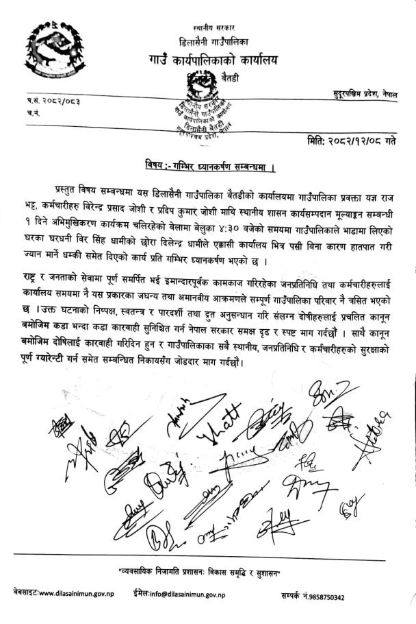 गम्भिर ध्यानाकर्षण सम्बन्धमा ।